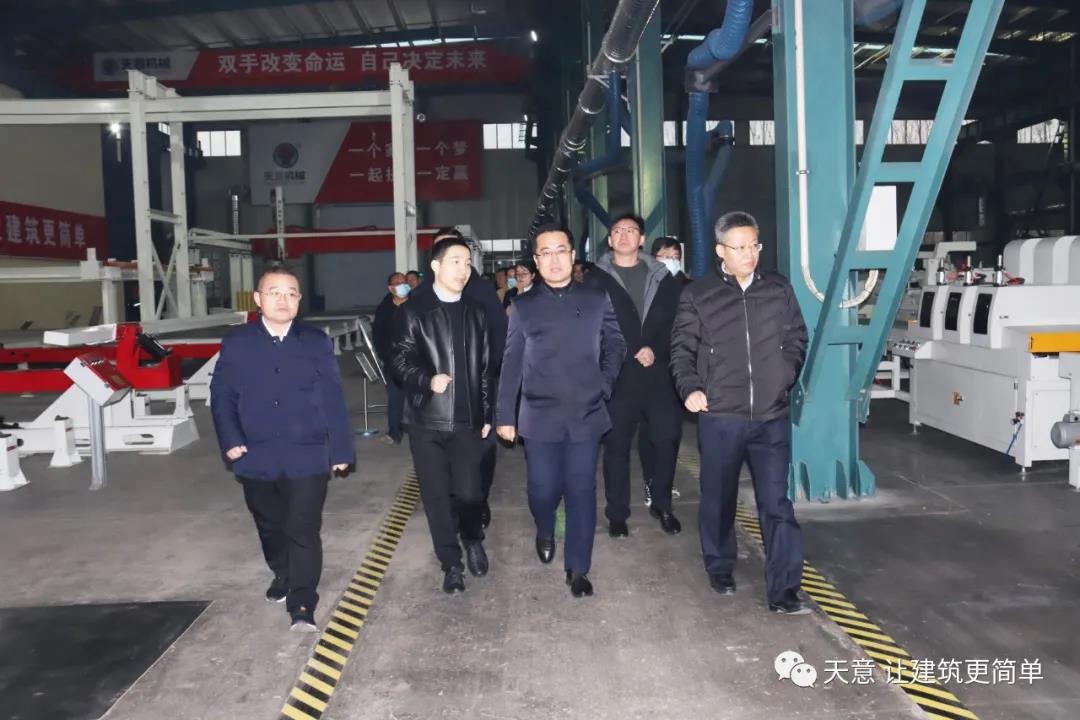 12月19日下午,嘉祥縣委副書記江峰一行蒞臨天意機(jī)械考察全市新舊動(dòng)能轉(zhuǎn)換現(xiàn)場觀摩項(xiàng)目——裝配式建筑自動(dòng)化PC生產(chǎn)線項(xiàng)目。兗州區(qū)區(qū)委副書記寇寧,發(fā)展和改革局副局長劉守全,天意機(jī)械總經(jīng)理劉海龍等領(lǐng)導(dǎo)陪同考察。