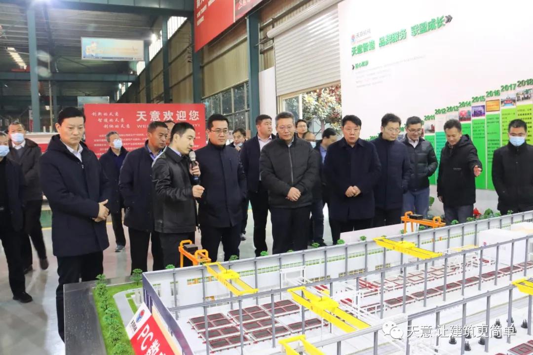 天意機(jī)械總經(jīng)理劉海龍向江副書記一行介紹了公司運(yùn)營和裝配式建筑未來發(fā)展規(guī)劃等相關(guān)情況,并對天意機(jī)械裝配式建筑自動(dòng)化PC生產(chǎn)線項(xiàng)目進(jìn)行了詳細(xì)介紹。江副書記一行對天意機(jī)械創(chuàng)新產(chǎn)品的技術(shù)先進(jìn)性以及對裝配式建筑發(fā)展的引領(lǐng)和帶動(dòng)作用給予了高度贊揚(yáng)。并表示將結(jié)合本地實(shí)際情況,取長補(bǔ)短,學(xué)習(xí)借鑒天意機(jī)械的好經(jīng)驗(yàn)好做法,把考察學(xué)習(xí)成果轉(zhuǎn)化為推動(dòng)本地企業(yè)發(fā)展的強(qiáng)大動(dòng)力和有力舉措。