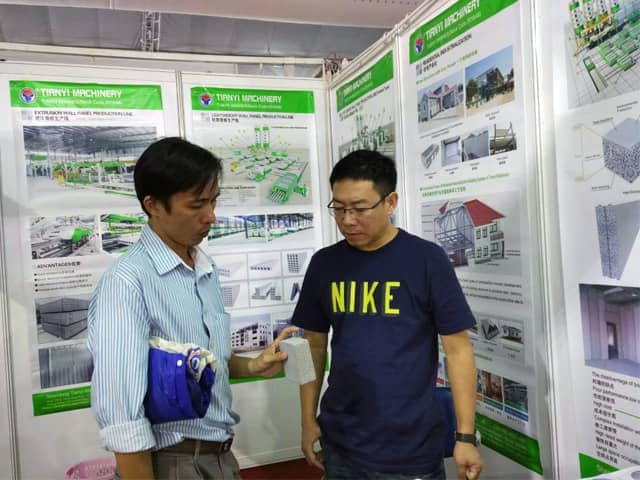 越南是亞洲經濟發(fā)展速度的國家之一。近年來,越南正加大對基礎設施建設和主要城市居民住宅的改造力度,綠色建筑建材裝備缺口巨大,為適應市場需求,天意機械攜綠色建材設備參展了此次展會。展會期間,外貿銷售部李經理,認真對待每位來訪的客戶,詳細向其介紹天意機械專利產品輕質墻板生產線,復合墻板生產線,保溫裝飾一體化板生產線等產品的優(yōu)勢,以及設備在東南亞地區(qū)建筑建材市場的影響,展會現場就有多數客戶,初步簽訂了輕質墻板生產線、復合墻板生產線加工生產訂單。