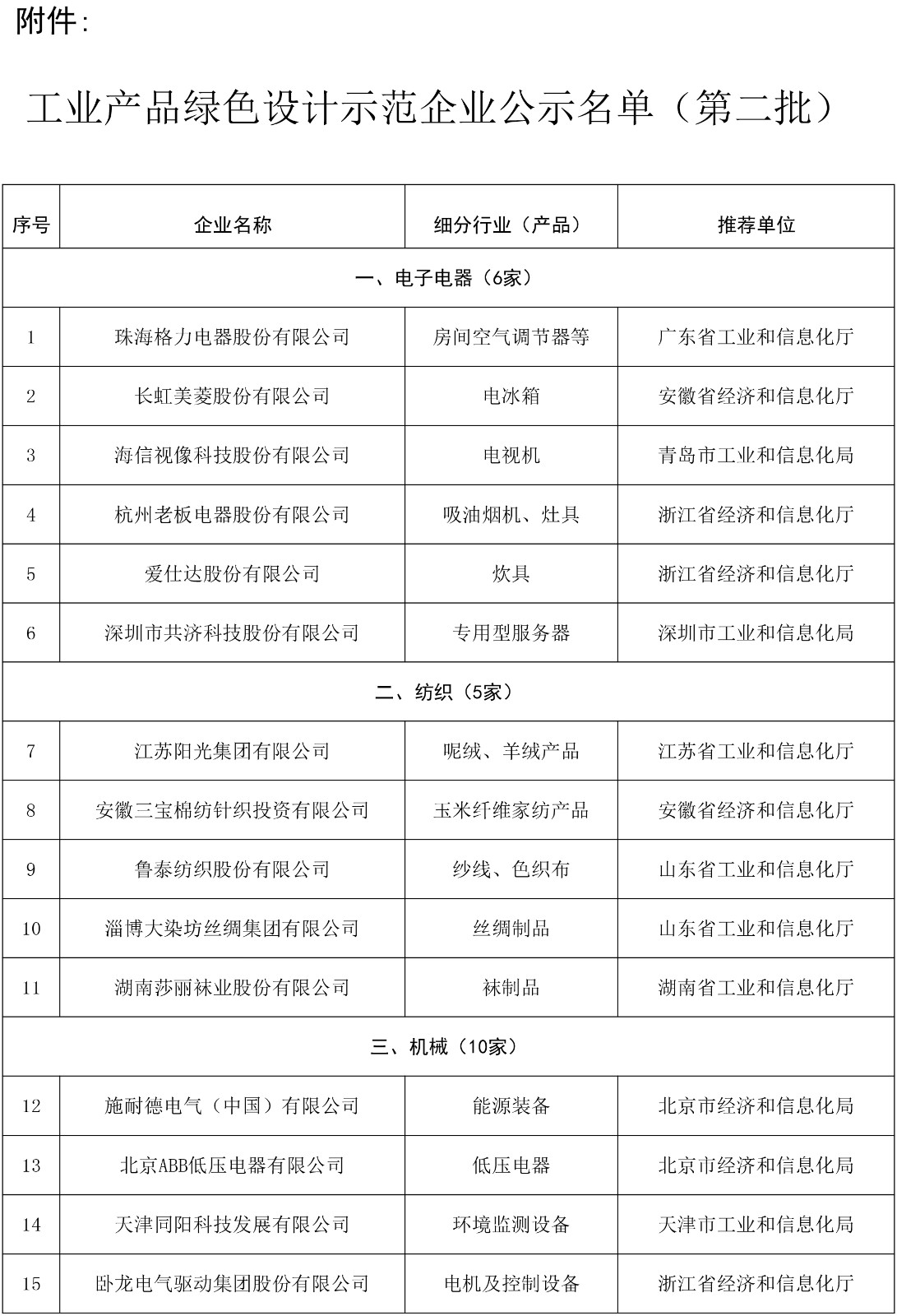 為加快推行工業(yè)產(chǎn)品綠色設(shè)計,促進(jìn)制造業(yè)高質(zhì)量發(fā)展,根據(jù)《工業(yè)和信息化部辦公廳關(guān)于組織推薦第二批工業(yè)產(chǎn)品綠色設(shè)計示范企業(yè)的通知》(工信廳節(jié)函〔2020〕110號),經(jīng)企業(yè)自評估、省級工業(yè)和信息化主管部門(或中央企業(yè))推薦及專家評審,工信部將擬確定為工業(yè)產(chǎn)品綠色設(shè)計示范企業(yè)(第二批)的名單予以公示。